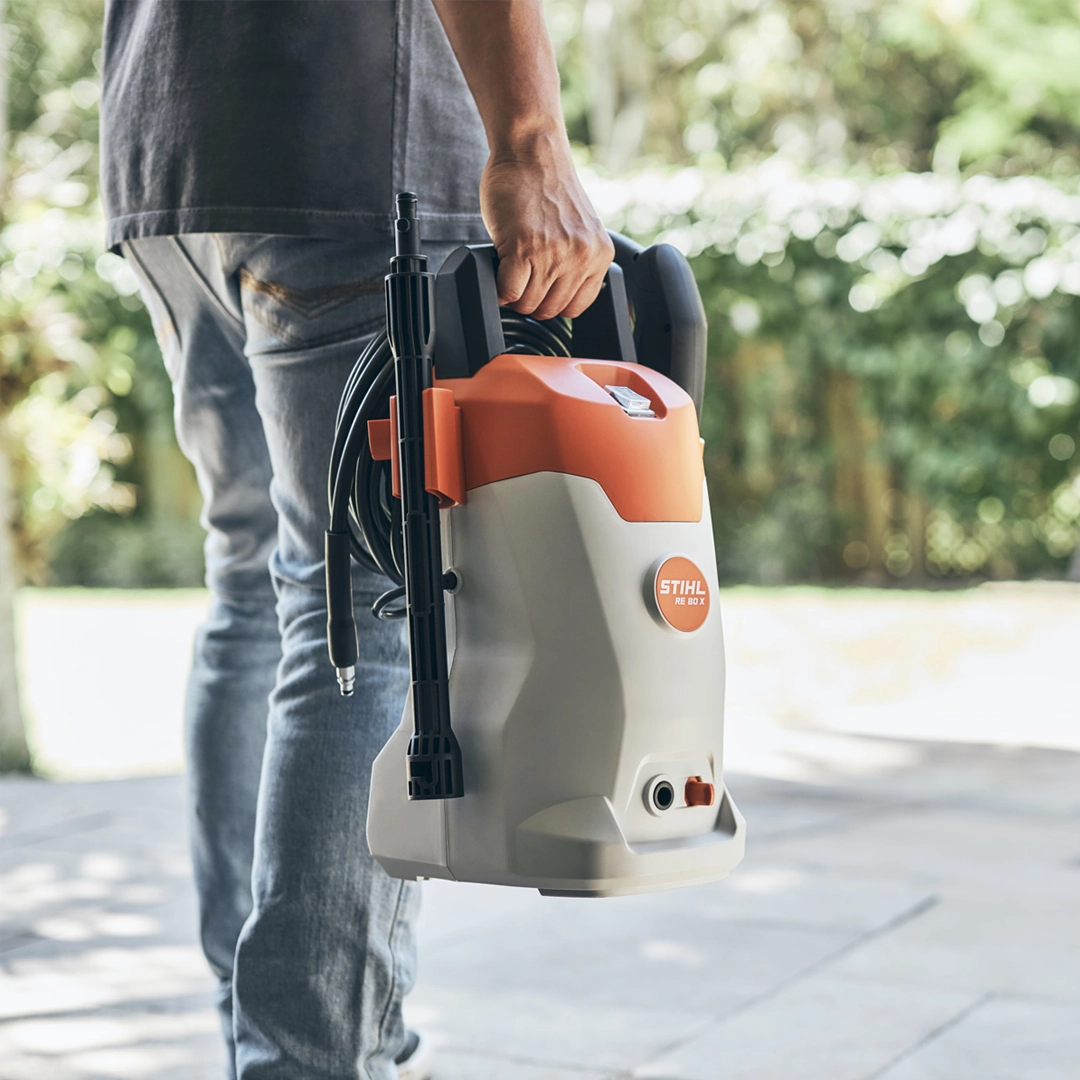 Equipada com um motor universal de 1,7 kW, a RE 80 X se destaca por seu desempenho robusto e sua operação suave. O engate rápido com junção anti-torção impede que a mangueira se torça durante o uso, e os suportes integrados para o cabo e os acessórios garantem que tudo fique organizado. Com um nível de pressão sonora de 83 dB(A) e potência sonora de 95 dB(A), a Lavadora de Alta Pressão STIHL RE 80 X é a escolha inteligente para quem valoriza a potência, a praticidade e a qualidade da marca STIHL.